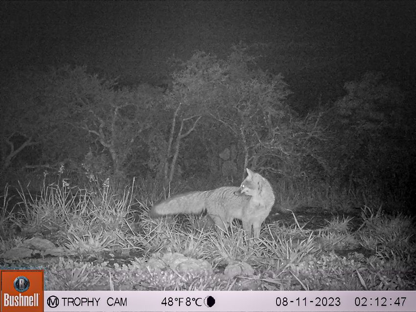 También se pusieron 5 cámaras trampa, colocadas una después de otra, a una distancia aproximada de 3 kilómetros, para cubrir toda la superficie de la UMA y los distintos tipos de vegetación que la componen, con el objetivo de documentar la presencia y abundancia de las especies, sus patrones de actividad y uso del hábitat.