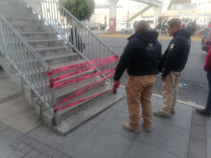 Derivado de una denuncia ciudadana que señalaba movimiento en el puente peatonal del Hospital General, personal de Protección Civil y de la Secretaría de Obras Públicas de Pachuca acudieron a revisar la estructura del mismo.