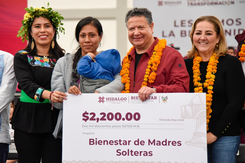 Por otro lado, con el firme compromiso de abatir los rezagos históricos que afectan a las hidalguenses, el gobernador encabezó la entrega simbólica de tarjetas bancarias de los programas “Bienestar de Madres Solteras” y “Bienestar y Desarrollo”, así como de apoyos económicos a mujeres en situación de violencia de género y para el bienestar físico de las mujeres.