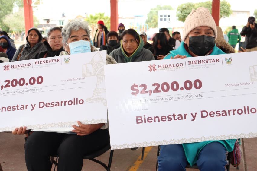 “Bienestar para madres solteras” así como “Bienestar y desarrollo”, son programas que entregan 2 mil 200 pesos, respectivamente, a personas en condiciones de marginación y pobreza en sectores prioritarios para el gobierno de Hidalgo.