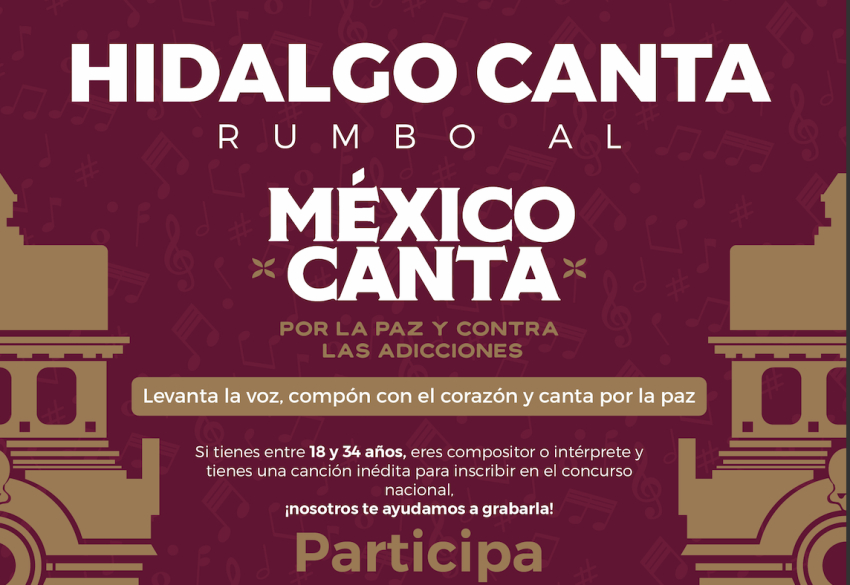 Con el objetivo de abrir oportunidades profesionales en la industria musical, el Gobierno de México, a través de la Secretaría de Cultura federal, y con el respaldo de la Secretaría de Cultura del estado de Hidalgo, lanzó el concurso binacional “México Canta”, en alianza con el Consejo Mexicano de la Música.