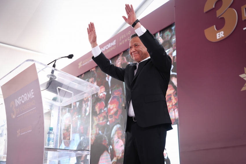 En un ejercicio de rendición de cuentas, ante más de 14 mil personas, el gobernador de Hidalgo, Julio Menchaca Salazar, presentó su Tercer Informe de Gobierno en la Plaza Juárez, en Pachuca, donde reafirmó el compromiso asumido hace tres años de transformar al estado de la mano del pueblo.