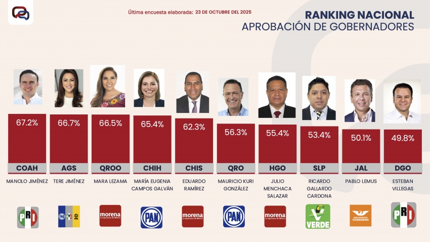 El estudio de opinión fue presentado el 23 de octubre y ubica al gobernador de Hidalgo con el 55.4 por ciento de aceptación y entre los mejor posicionados en nivel de confianza.