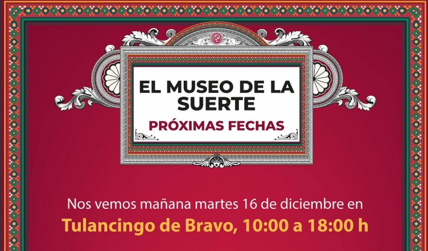 Tras su paso por Hidalgo, el Museo de la Suerte continuará su gira nacional con presentaciones en Toluca, el sábado 20 de diciembre, así como en la Ciudad de México, los días lunes 22 y miércoles 24.