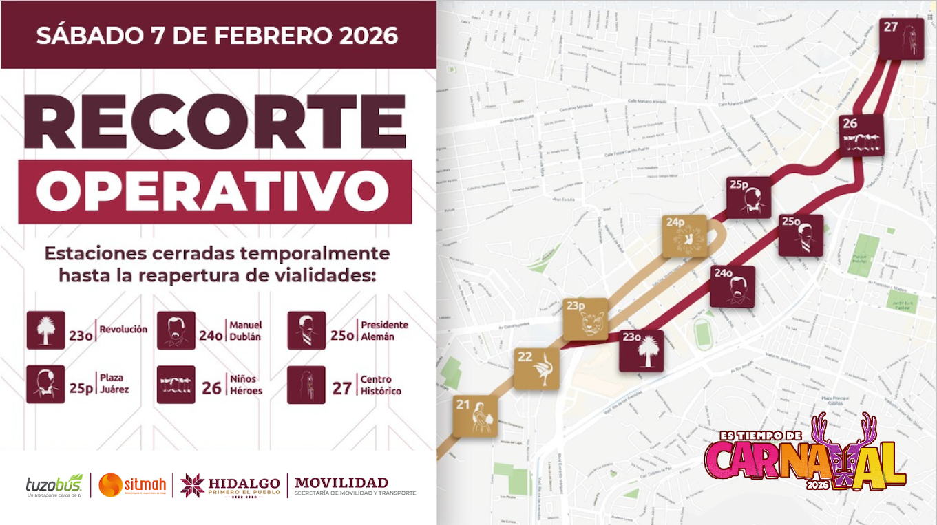 La Secretaría de Movilidad y Transporte, a través de su organismo sectorizado, el Sistema Integrado de Transporte Masivo de Hidalgo (Sitmah), estableció medidas operativas y logísticas en torno al evento “Es Tiempo de Carnaval 2026”, el cual se llevará a cabo el próximo sábado 7 de febrero en la ciudad de Pachuca de Soto.