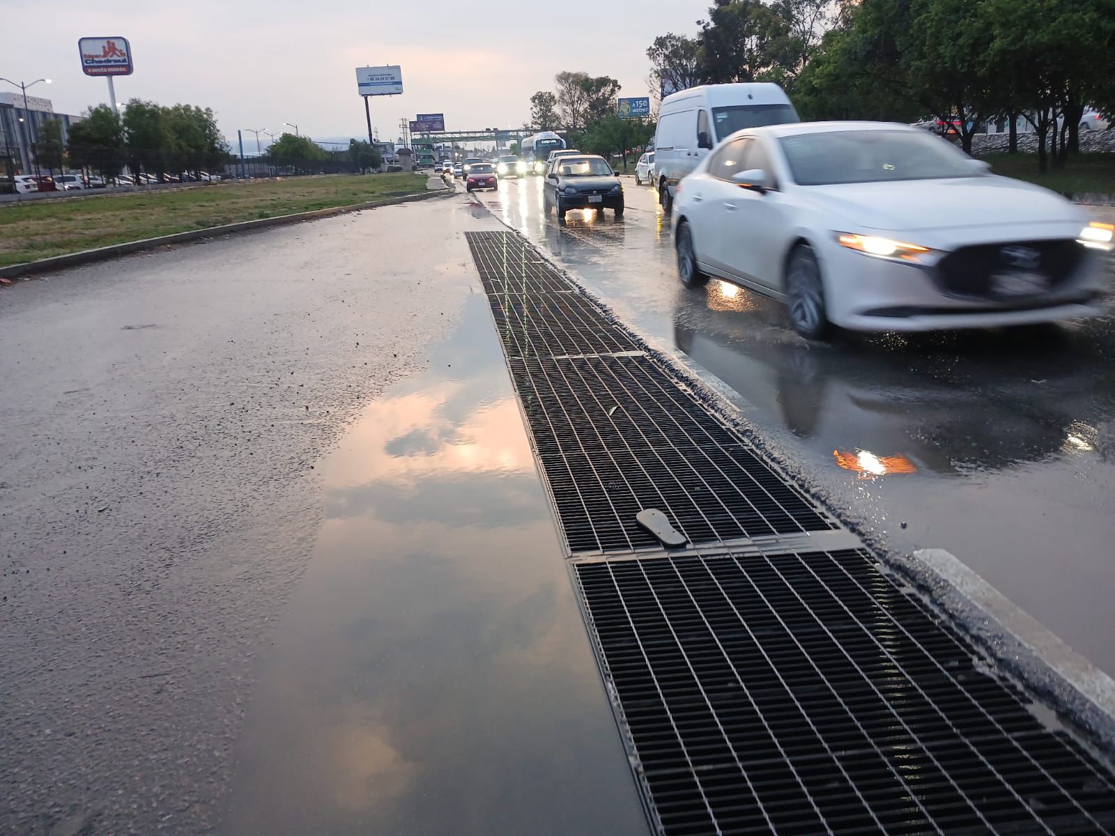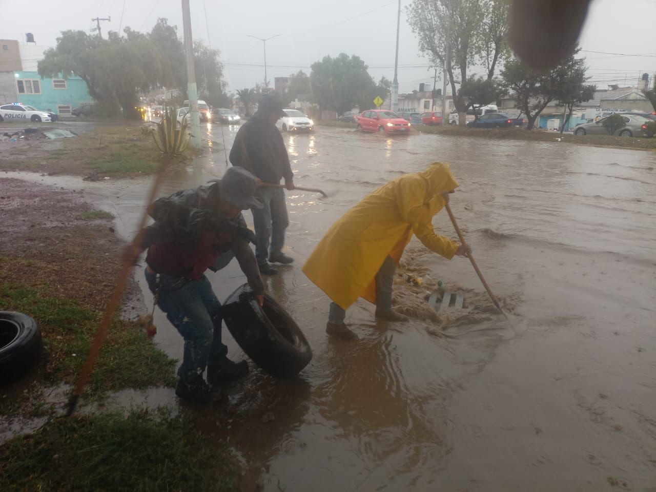 Al Bulevar Felipe Ángeles se trasladó un vehículo vactor para facilitar el flujo del agua y normalizar el tránsito vehicular. Entre los principales puntos atendidos destacaron el Dren Pluvial Piracantos, la carretera Pachuca – Ciudad Sahagún, Bulevar Minero, Bulevar Colosio y el Dren Saucillo.