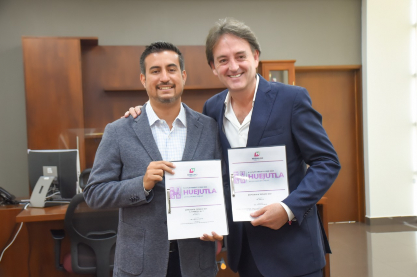 Se reúnen en el Congreso del Estado, Francisco Xavier Berganza Escorza, presidente de la Junta de Gobierno y alcalde de Huejutla de Reyes Hidalgo, Daniel Andrade Zurutuza, para trabajar en conjunto en la realización de obra pública en beneficio de los huejutlenses.