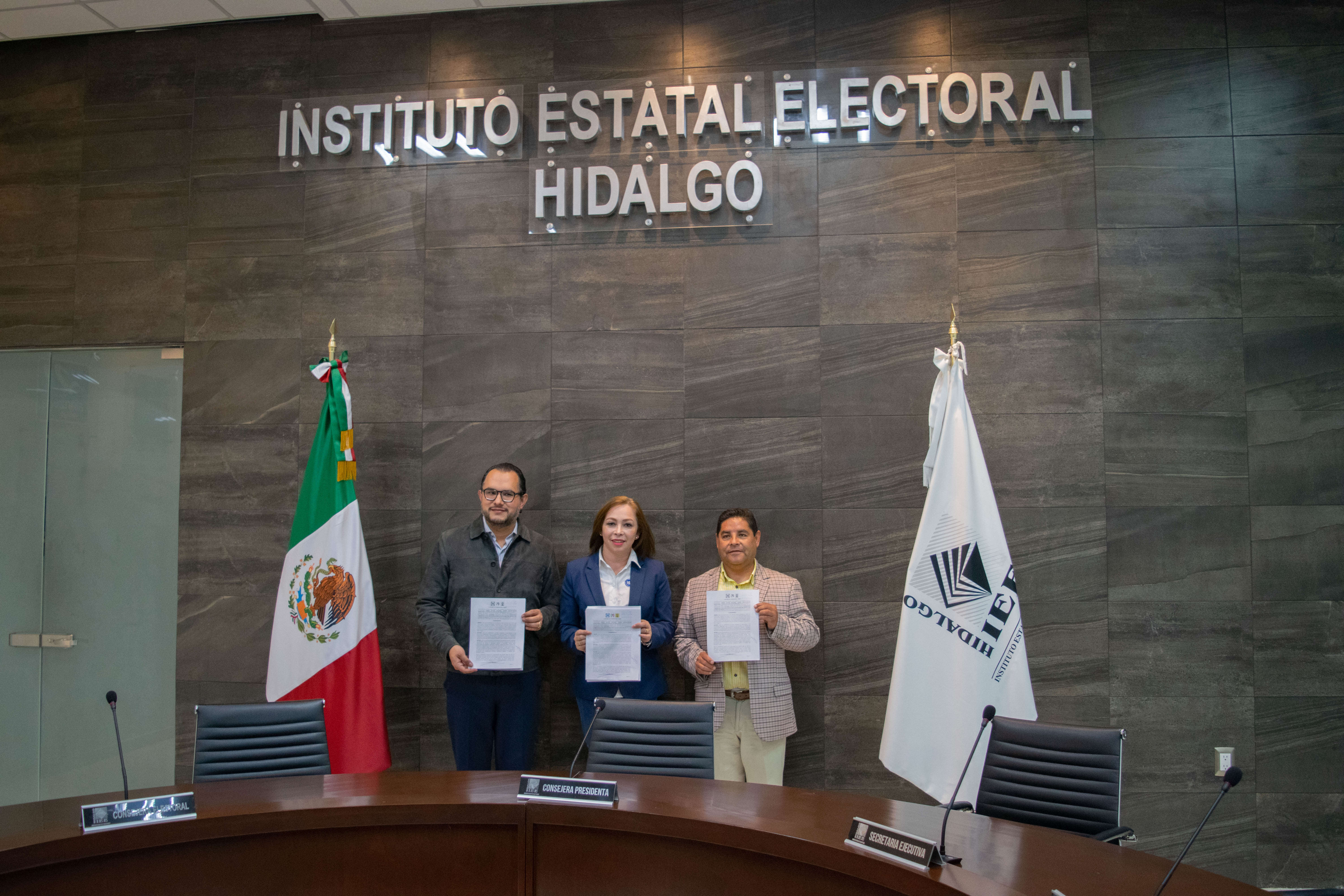 El evento tuvo lugar en las instalaciones del Instituto Estatal Electoral de Hidalgo (IEEH), donde los presidentes de los tres partidos políticos, encabezados por Claudia Lilia Luna Islas del PAN, Marco Antonio Mendoza Bustamante del PRI y Jorge Luis Pérez Viveros del PRD, hicieron entrega oficial de dicho convenio. Así mismo, asistieron los representantes ante el IEEH de cada partido, Victor Hugo Sánchez Rivera (PAN), Federico Hernández Barros (PRI) y Javier López Torres (PRD).