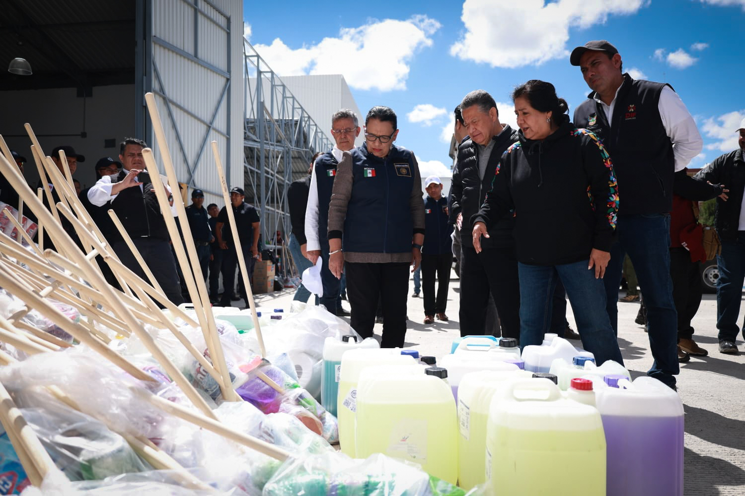 De estos insumos, ya se enviaron apoyos a los municipios de Juárez Hidalgo y Molango, junto con 194 kits de limpieza y 150 bolsas de papa natural.