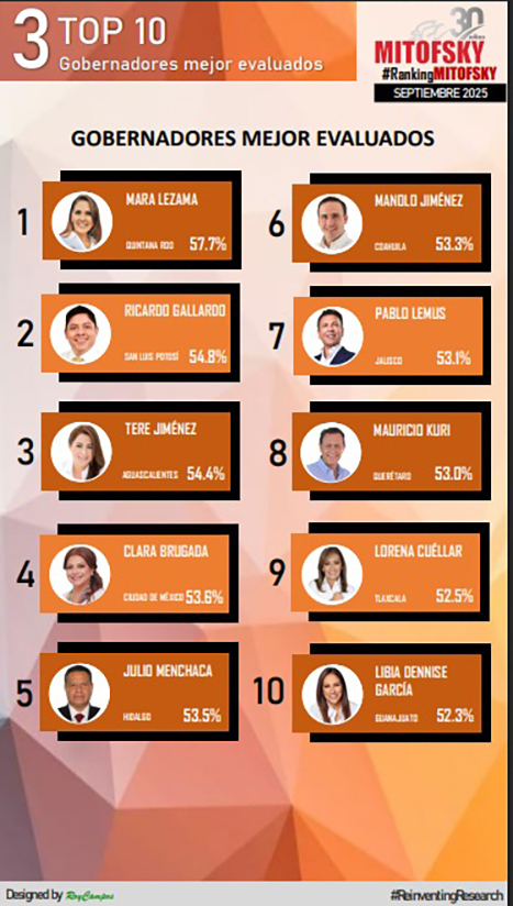 Con resultados que reflejan confianza ciudadana y una gestión cercana a la gente, el gobernador de Hidalgo, Julio Menchaca Salazar, se consolidó entre los cinco mandatarios estatales mejor evaluados del país, según el Ranking Mitofsky correspondiente a septiembre de 2025.