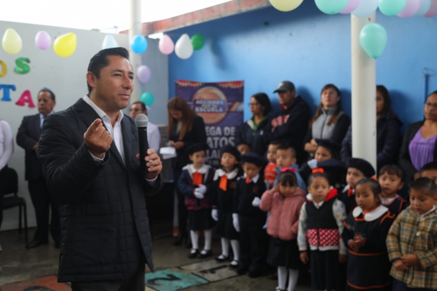 Al respecto el alcalde Raúl Camacho Baños comentó.-“Hoy tenemos 45 niños inscritos y darle la bienvenida a 11 más que inician su formación en este CAIC, siempre he apoyado a las instituciones escolares, hoy como alcalde hemos hecho lo necesario para que tengan instalaciones dignas para sus hijos, es el tercer año consecutivo, que hacemos la entrega del calzado escolar, somos pioneros en este programa, hoy hay más municipios que lo están replicando y me da gusto que se preocupen por sus ciudadanos, los zapatos escolares, ayudan a su economía familiar, siempre la ayuda va a ser buena desde los tres órdenes de gobierno, agradezco el interés de la directora, y todo esto ha sido en beneficio de ustedes, seguiremos trabajando para fortalecer la educación hasta el último día de mi mandato”.