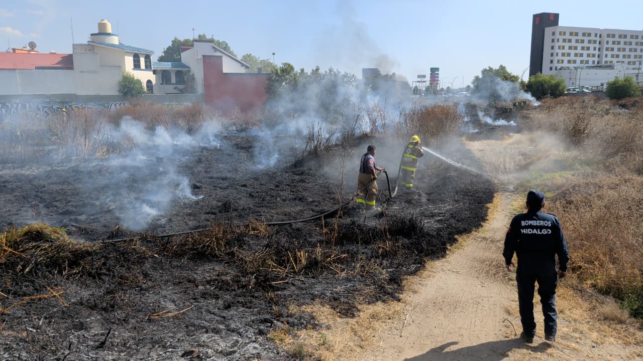 Horas más tarde, los bomberos y personal de protección civil de Pachuca, acudieron al llamado de auxilio, por un incendio en el bulevar Colosio el cual consumió varias hectáreas de pasto y neumáticos abandonados.