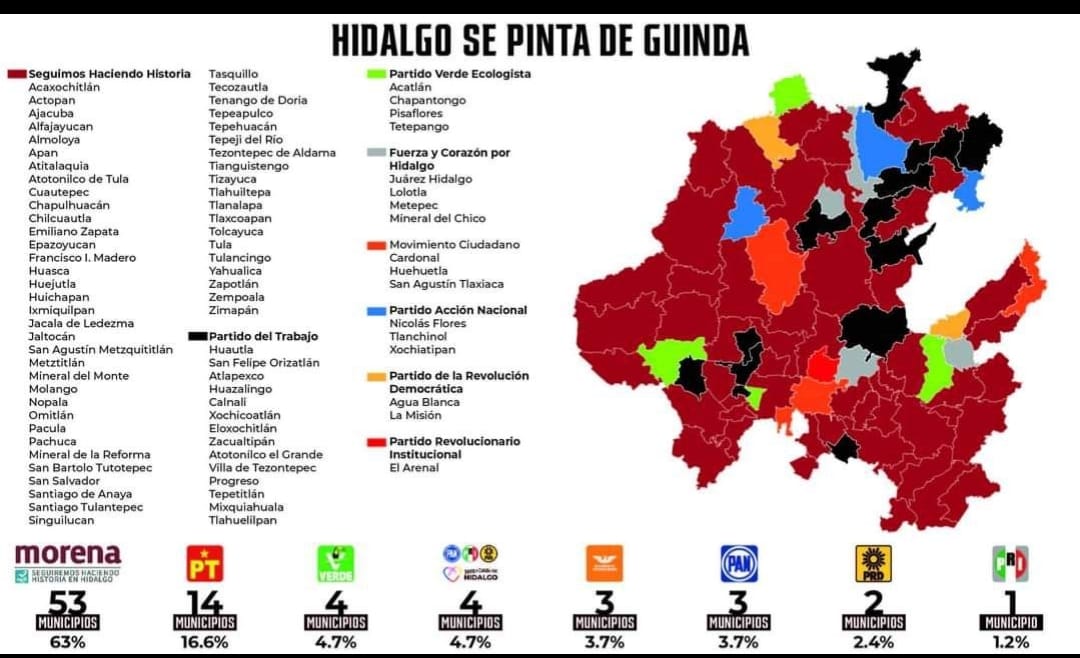 Cabe mencionar que el resultado obtenido este 2 de junio en Pachuca es histórico debido a que en los últimos procesos municipales 2016 y 2020 se ganaron con poco más de 45 y 30 mil sufragios, es decir, que en algunos casos Jorge Reyes duplicó la votación ganadora y la participación ciudadana.