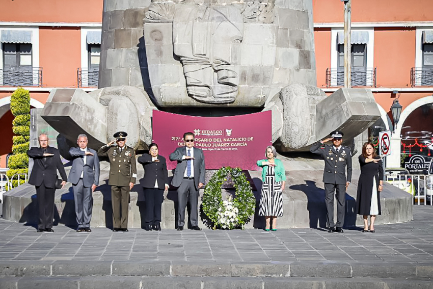 Ante el monumento del Benemérito de las Américas en Plaza Juárez el secretario de Gobierno, Guillermo Olivares Reyna, presidió la ceremonia de conmemoración del 217 aniversario del natalicio del expresidente, en representación del gobernador Julio Menchaca Salazar.