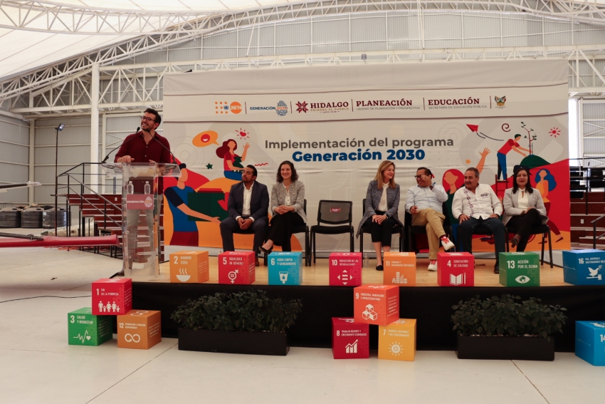 Miguel Ángel Tello Vargas, titular de la Unidad de Planeación y Prospectiva, y Alanna Armitage, representante asistente del Fondo de Población de las Naciones Unidas (UNFPA), presentaron el programa Generación 2030 a los estudiantes de la Universidad Politécnica Metropolitana de Hidalgo (UPMH) para motivarlos respecto al potencial que tienen para ser agentes de cambio y contribuir al logro de los Objetivos de Desarrollo Sostenible (ODS).