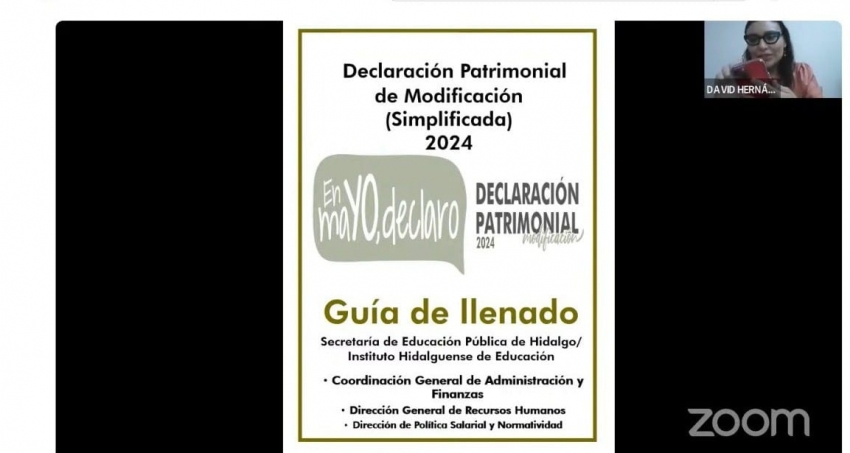A fin de impulsar acciones de información y sensibilización para el cumplimiento de la obligación que tienen las y los servidores públicos, el Instituto Hidalguense de Educación (IHE) realizó una plática informativa referente a la Declaración de Situación Patrimonial de Modificación 2024.