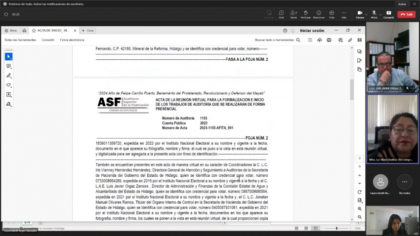 Este proceso se lleva a cabo de manera virtual, con la firma electrónica avanzada, a través del Buzón Digital de la ASF, y se enfocará en la administración y aplicación de 83.6 millones de pesos destinados a obra pública, ejercidos por la Secretaría de Hacienda estatal, 17 municipios y la Comisión Estatal del Agua y Alcantarillado (CEAA).