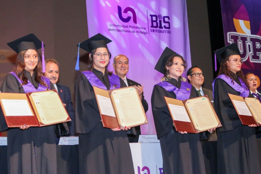 Al presidir la entrega de 632 títulos a egresados de la Universidad Politécnica Metropolitana de Hidalgo (UPMH), Castrejón Valdez expresó su reconocimiento a las madres y los padres de familia por el apoyo que brindan a sus hijas e hijos para llegar a este momento.