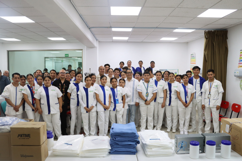 Asimismo, Castrejón Valdez se reunió con estudiantes de las licenciaturas en Enfermería y Médico Cirujano, a quienes entregó material para el desarrollo de su formación práctica como batas quirúrgicas, equipos de protección y material de curación.