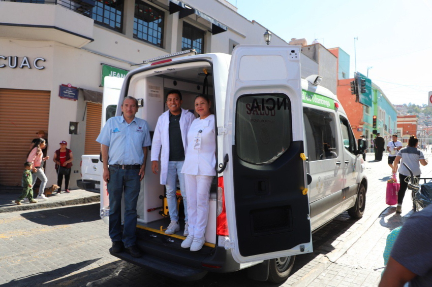 También se contará con 4 ambulancias de traslado: instaladas, atrás del Teatro Hidalgo, en el Monumento a la Revolución, frente al Monumento del Maestro, y otra frente a la sucursal de Banamex.