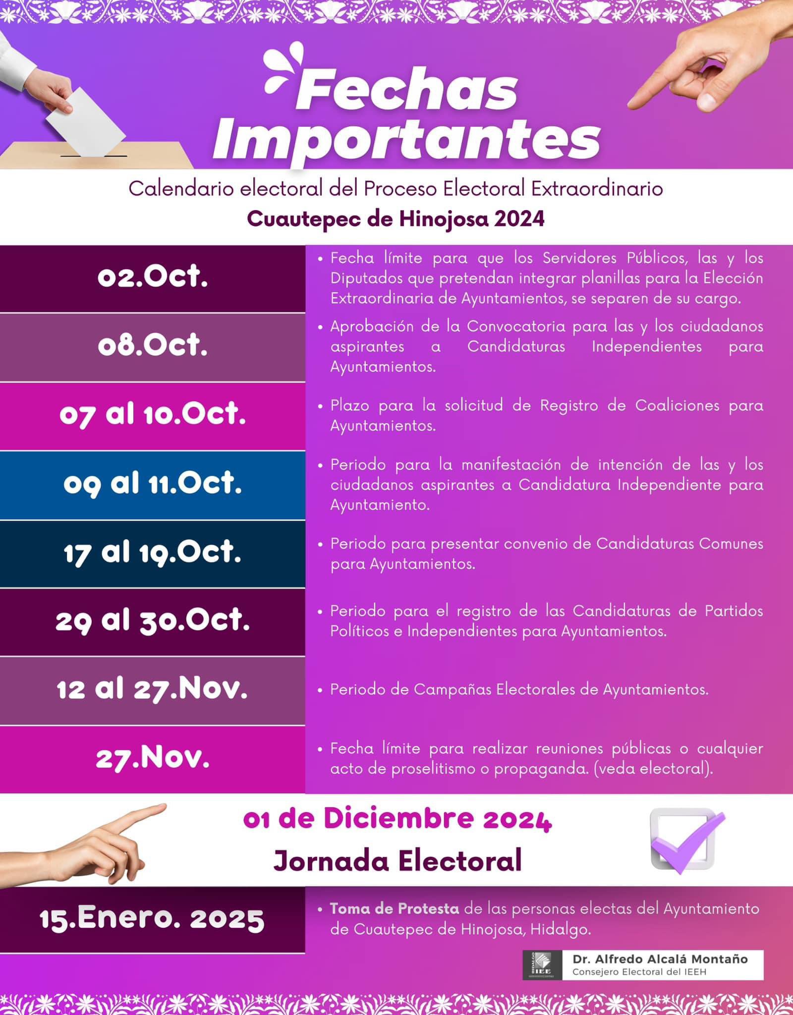 La elección extraordinaria municipal en Cuautepec de Hinojosa, será el próximo 1 de diciembre.