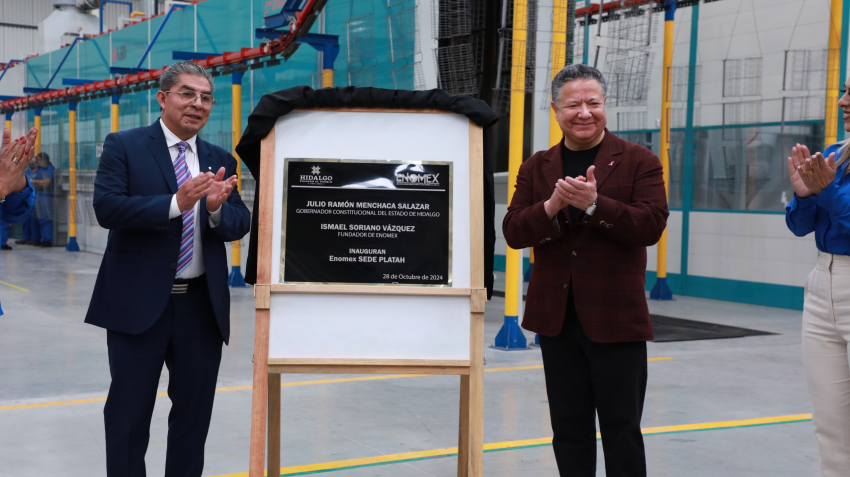 “Es tiempo de mujeres”, resaltó el mandatario al reconocer el esfuerzo de quienes conforman Enomex, compañía familiar que decidió asentarse en Hidalgo por el respaldo que la administración estatal ha brindado, así como por la vinculación que existe entre todos los sectores.