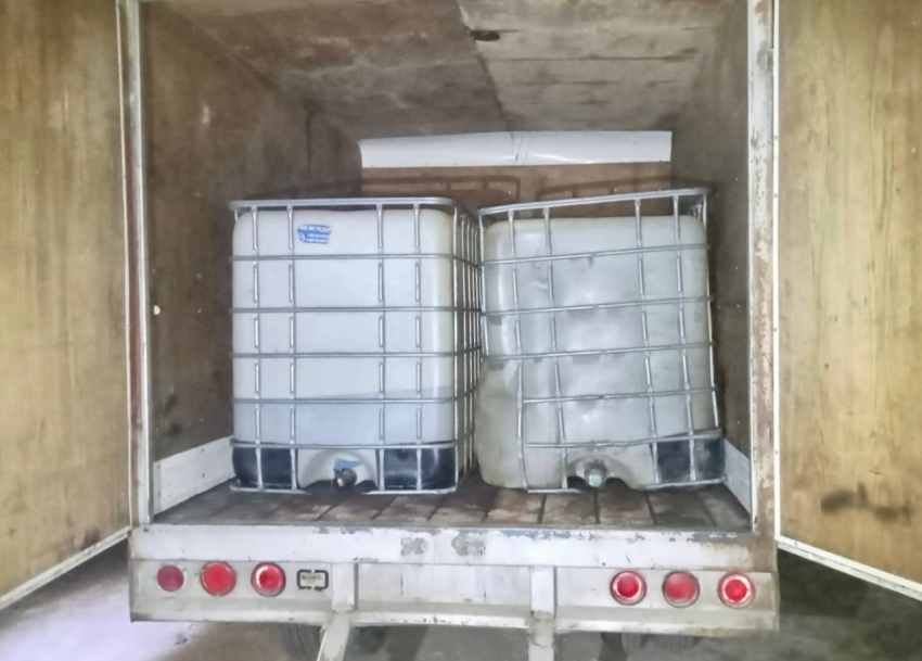 Durante la revisión se verificó que la primera unidad, marca Ford, color blanco, transportaba tres contenedores de mil litros abastecidos al 80 por ciento con líquido hidrocarburo.