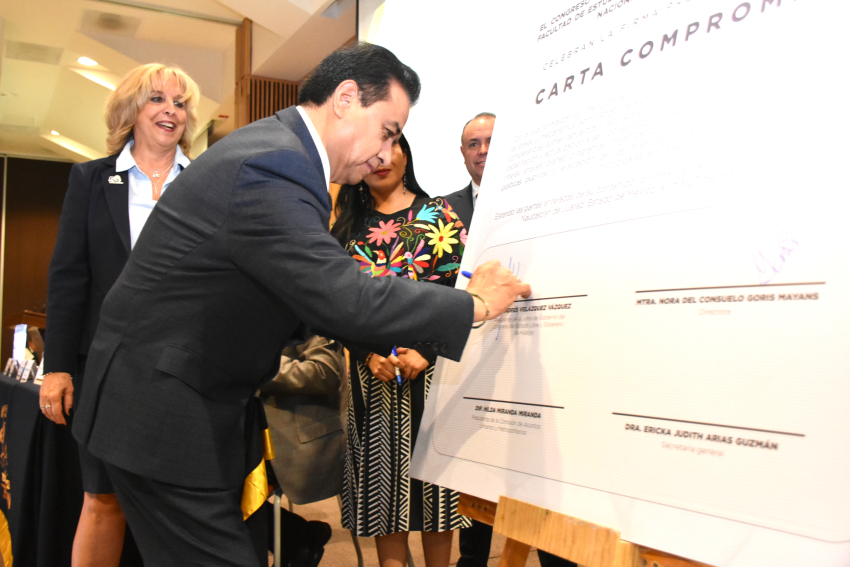 El Congreso del Estado Libre y Soberano de Hidalgo y la Facultad de Estudios Superiores (FES) Acatlán de la Universidad Nacional Autónoma de México (UNAM) firmaron una carta compromiso, con el objetivo de sumar esfuerzos y recursos en la realización de actividades conjuntas para la capacitación y actualización a servidores públicos.