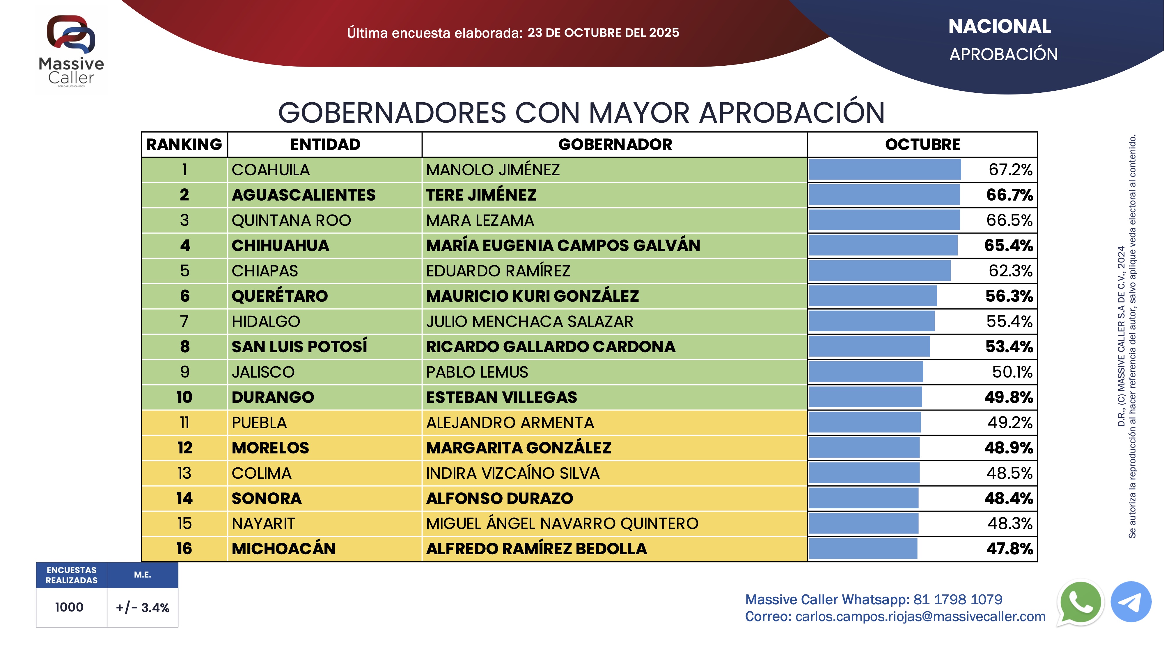 Massive Caller presenta el tablón nacional de aceptación para gobernadores.
