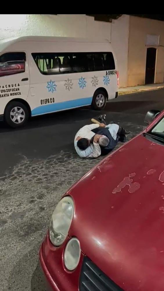 De acuerdo a los testigos el lamentable hecho se suscito la noche de ayer en el centro de dicha comunidad donde los irracionales prestadores de servicio público pelearon al parecer por la disputa del pasaje y lo peor de todo es que supuestamente señalaron quienes presenciaron el pleito, son compañeros de la misma ruta Pachuca - Santa Monica, uno de ellos identificado como Santago N.