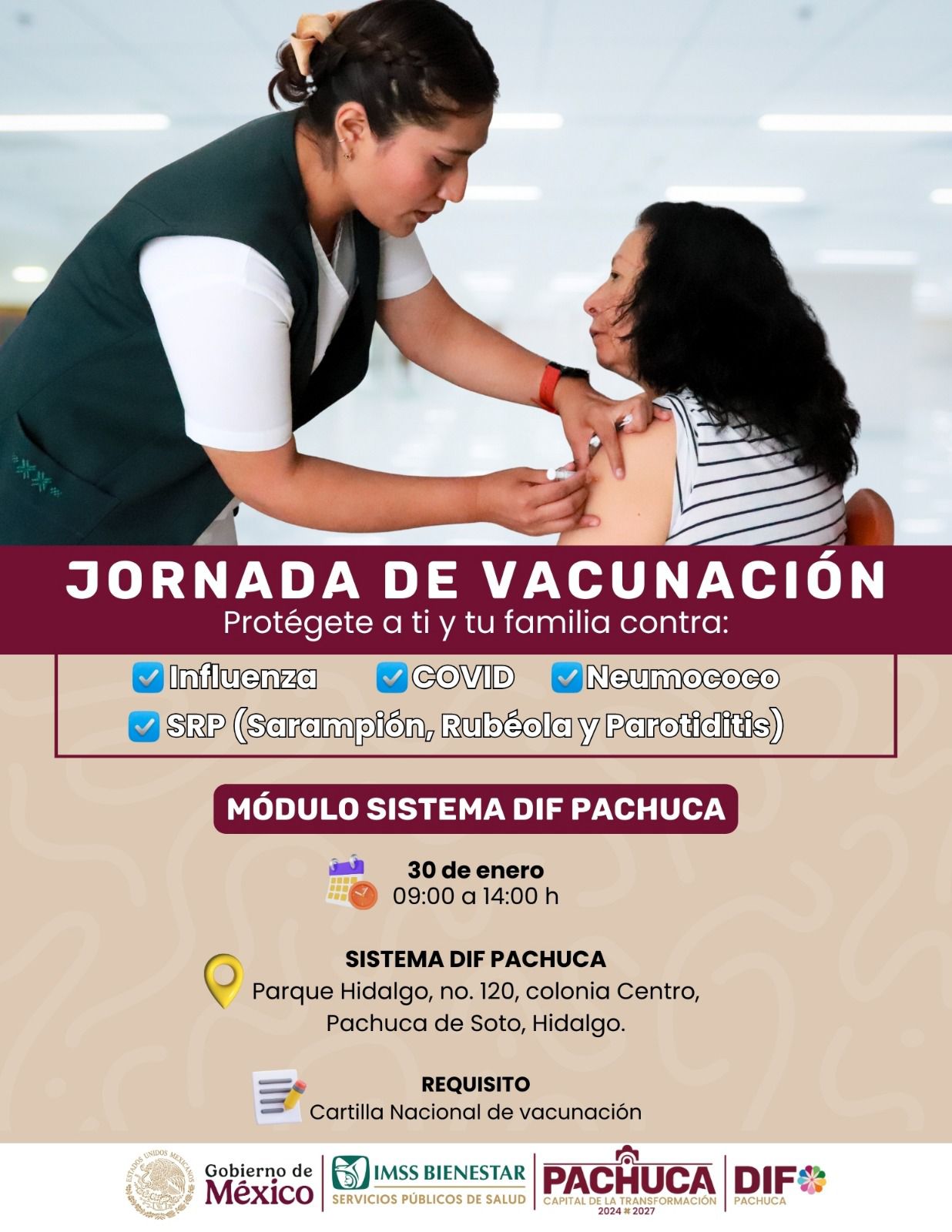 El Sistema para el Desarrollo Integral de las Familias (DIF) Pachuca se suma a las acciones para la protección y el bienestar de la población, mediante la realización de una Jornada de Vacunación y Registro a IMSS Bienestar, dirigida principalmente a personas que no cuentan con seguridad social.