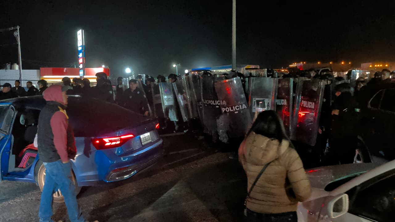 Pasadas las 21 horas, personal antimotines de la Secretaría de Seguridad Pública estatal, arribaron al lugar y encapsularon a los quejosos.