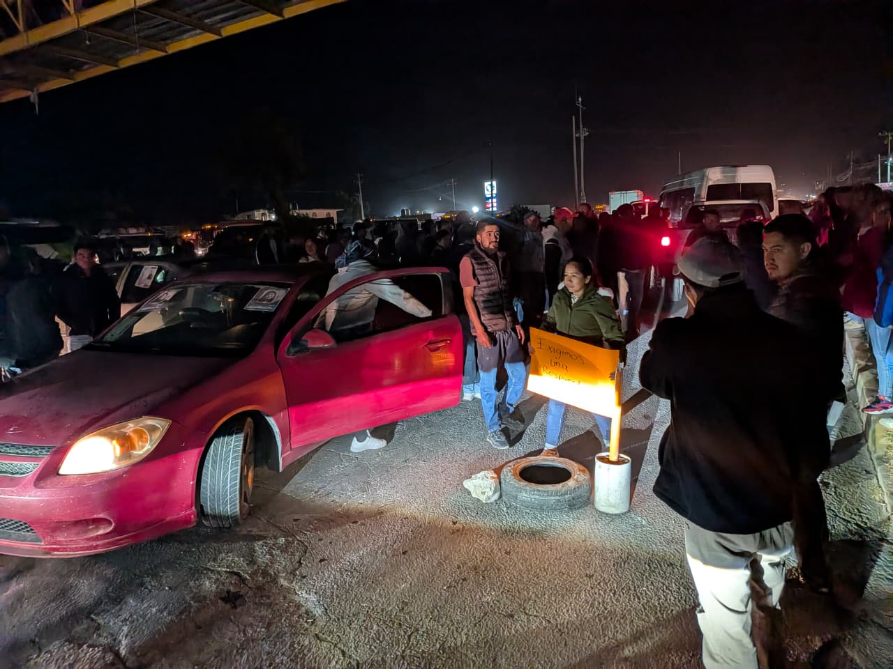 "La queremos de regreso y viva" eran los gritos de los inconformes quienes alrededor de las 19 horas bloquearon la vialidad a la altura de San Agustín Tlaxiaca.