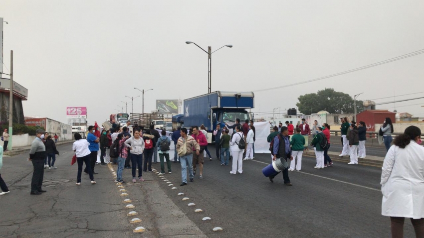 Personal médico del Hospital del IMSS en Tulancingo se manifiesta con el cierre dde la carretera México-Tuxpan en demanda de material para atender la emergencia sanitaria provocada por el coronavirus.