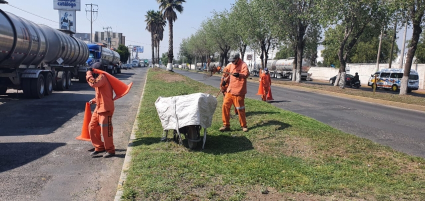 Los trabajos de limpieza que ejecuta personal de la dependencia se realizan en camellones centrales y laterales en ambos sentidos de dicha vialidad.