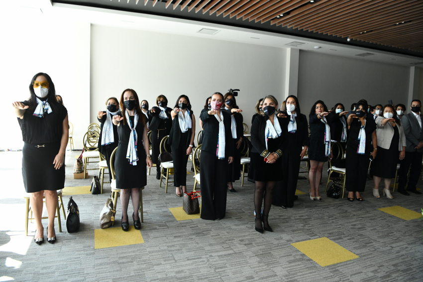 Lucero Cabrales García, dirigente nacional de la Amexme tomó protesta al nuevo Consejo Directivo Capítulo Pachuca encabezado por Adriana Flores Valencia, quien sustituye a Jannette Cancino para el periodo 2020-2023, y a quienes les hizo un reconocimiento por sus aportaciones al organismo.