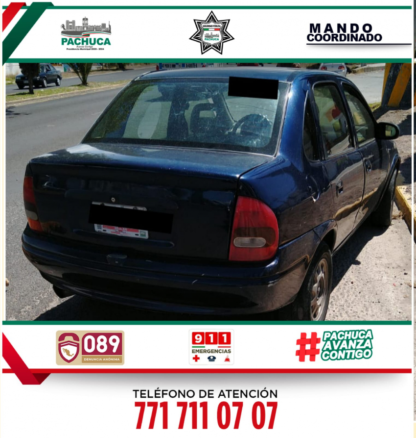 Elementos de la Secretaría de Seguridad Pública, Tránsito y Vialidad de Pachuca detuvieron a un hombre de 30 años por robo de vehículo en la colonia Campo de Tiro.
