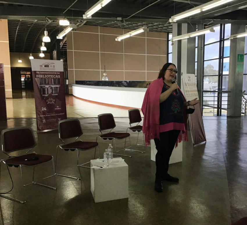 También habló sobre el panorama al que se enfrentan las bibliotecas en las comunidades indígenas, donde en Hidalgo prevalecen el náhuatl y hñähñú, pero carecen de libros publicados en sus idiomas originarios.