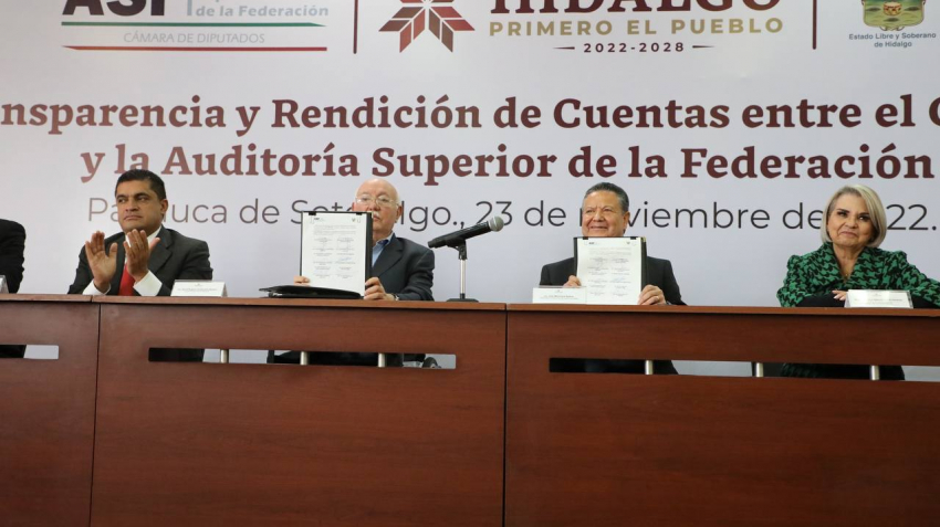 El gobierno de Hidalgo se unió al Pacto por la Transparencia y Rendición de Cuentas que promueve la Auditoría Superior de la Federación (ASF). El titular del Ejecutivo estatal, Julio Menchaca Salazar, firmó este acuerdo que ayudará a concretar los esfuerzos para transparentar la gestión y rendirle cuentas a la ciudadanía.