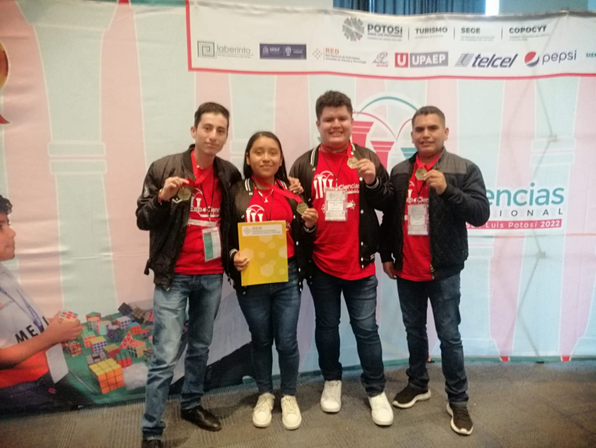 Jonathan Emir Lara Pérez, Ana Laura Ramírez Morales y Marcos José Nochebuena Martínez presentaron su proyecto en la Expo Ciencias Nacional 2022 San Luis Potosí en diciembre y obtuvieron el reconocimiento por la Red Nacional de Actividades Juveniles en Ciencia y Tecnología y Jóvenes Emprendedores de Hidalgo.