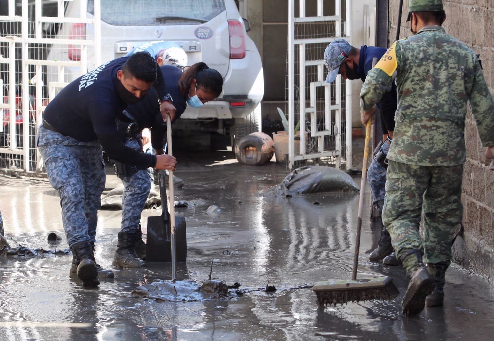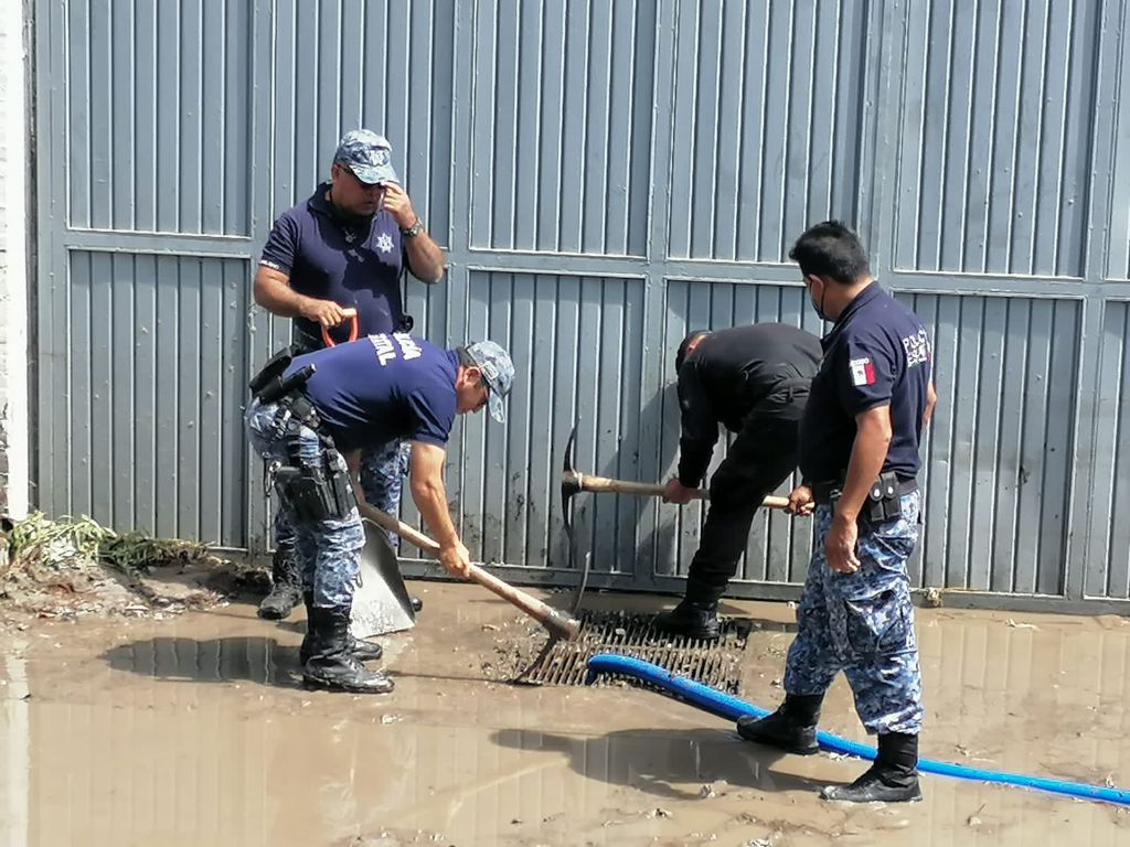 Personal de la dependencia participa en los municipios los trabajos de limpieza, traslado de personas, desazolve, vigilancia y seguridad preventiva contra conductas delictivas; así como revisión de infraestructura tecnológica del C5i y atención de reportes de emergencia.