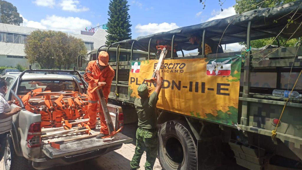 En tanto que el H. Cuerpo de Bomberos colabora con 25 elementos, unidades de rescate, auto bomba, equipo de bombeo de unidades prehospitalarias, pipas de agua.