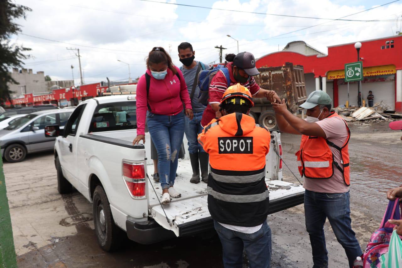 El Sistema DIF Hidalgo y la Sedeso reportan la presencia de 110 personas en los refugios temporales de Tula y 210 en los refugios de Tezontepec de Aldama, Tlahuelilpan, Tepeji del Río, Chilcuautla e Ixmiquilpan.