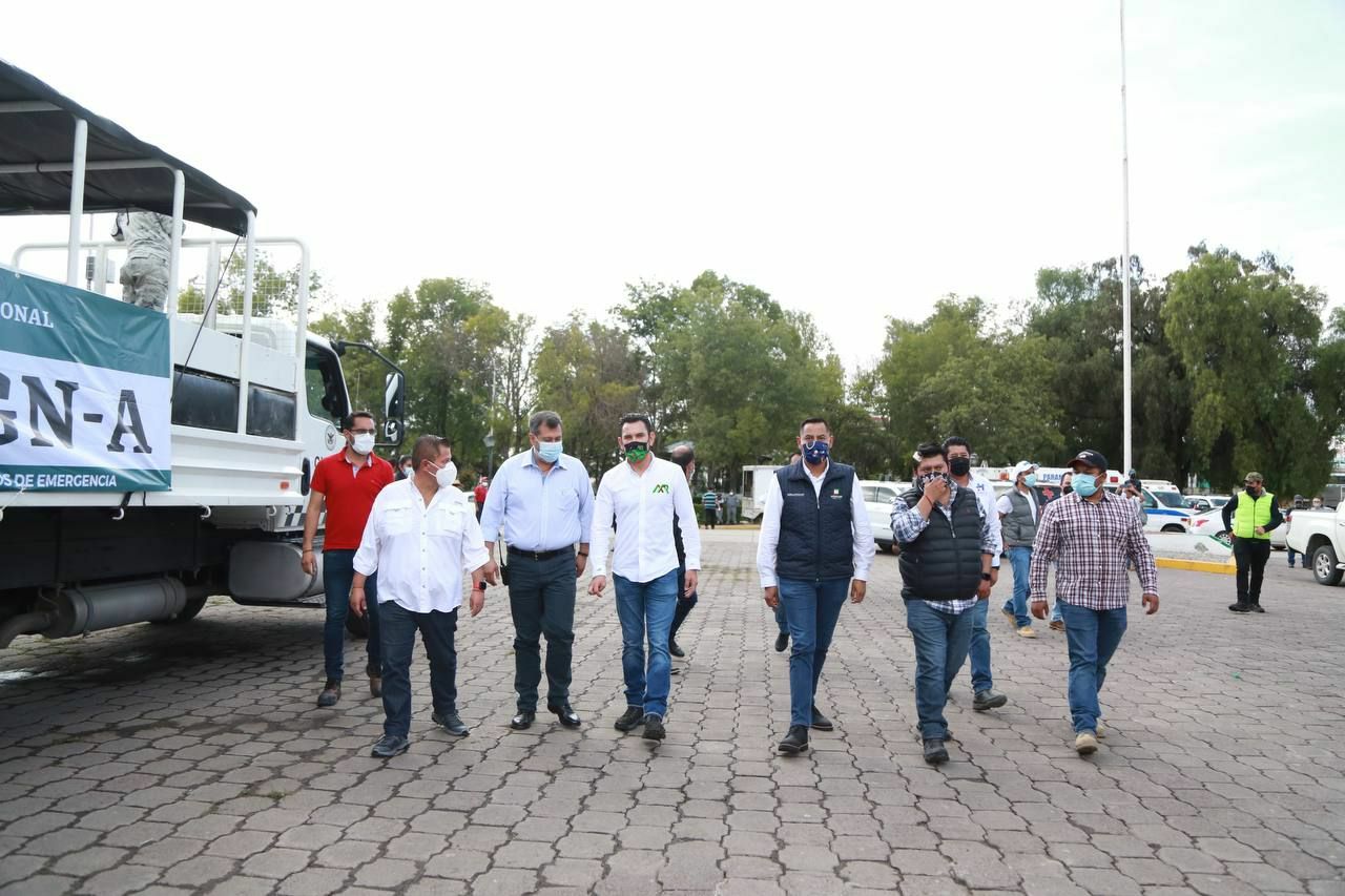 Le acompañaron sus homólogos de Zacualtipán de Ángeles, Edgar Josué Moreno Gayosso; de Zapotlán de Juárez, Hugo Álvarez; por Huasca de Ocampo acudió Francisco Mayoral Flores; Omitlán de Juárez representado por Jorge Martín Borbolla Calderón y de Mineral del Monte el alcalde Alejandro Sierra Tello quienes acudieron a la convocatoria del presidente de la AMEH para sumar esfuerzos en beneficio de los damnificados.
