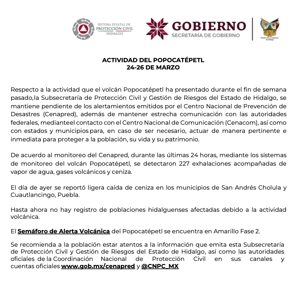 Las fechas de los otros operativos son: 28 de marzo en Huichapan (ITESHU); 30 de marzo en Chapulhuacán (Cobaeh); 31 de marzo de Ixmiquilpan (CECyTEH); 3 de abril en Mixquiahuala (ITSOEH); 4 de abril Tizayuca (Cobaeh) y 5 de abril en Pachuca (Sedeso).