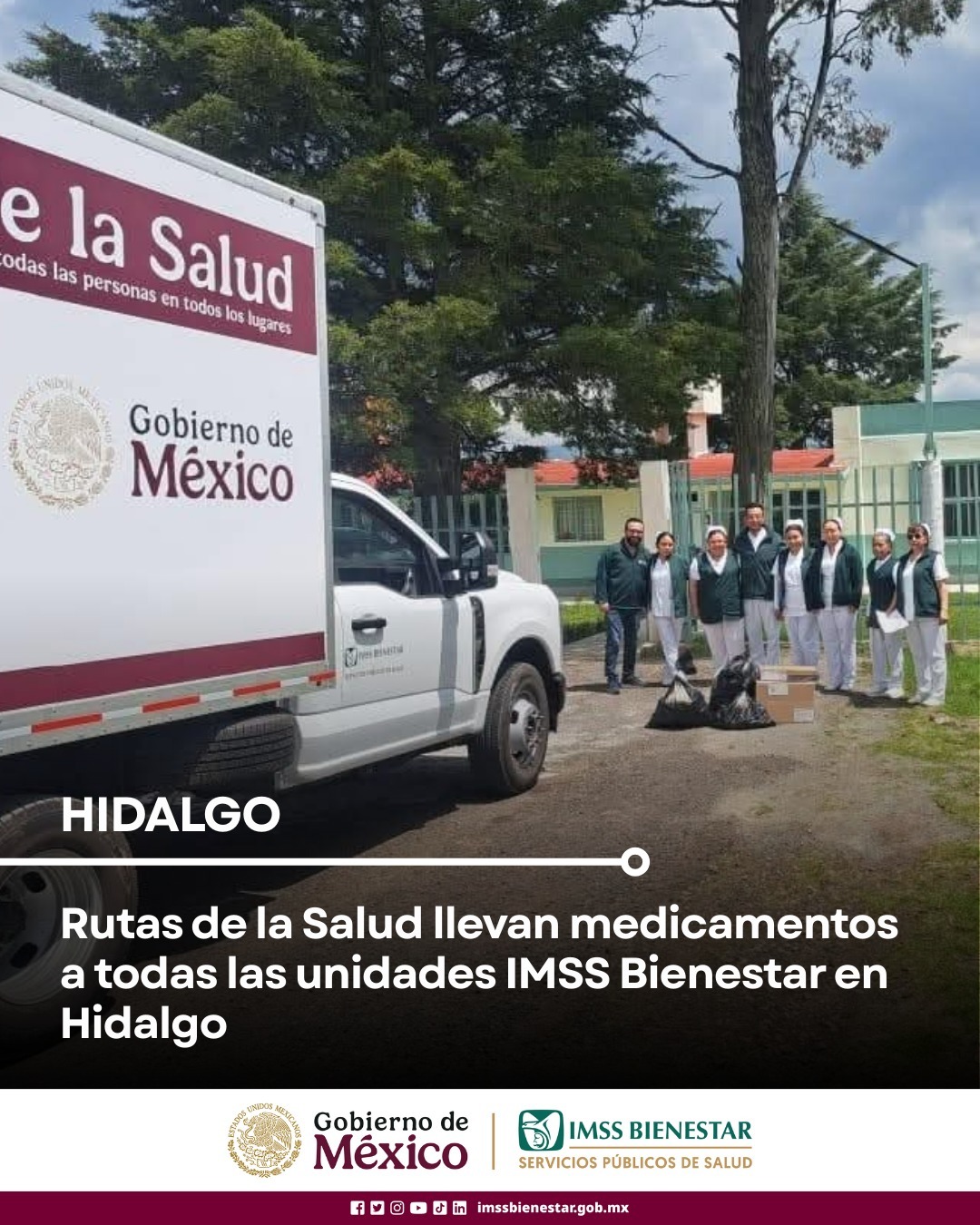 Como parte del programa federal “Rutas de la Salud”, 502 unidades de salud de primer, segundo y tercer nivel de atención del IMSS Bienestar en Hidalgo recibieron un millón 755 mil 547 piezas de medicamentos y suministros médicos para beneficiar la población sin seguridad social.