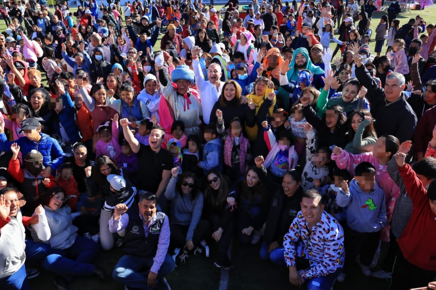 Acompañado también de los 3 Reyes Magos, las niñas y niños recibieron una rebanada de rosca y se divirtieron en inflables que fueron colocados en la Unidad Deportiva de Piracantos.