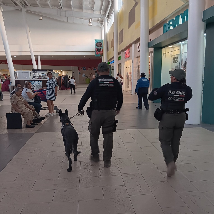 De igual forma se mantuvo vigilancia en plazas comerciales de la ciudad con recorridos al interior y en los estacionamientos de las mismas, incluyendo elementos caninos, sin ninguna novedad.