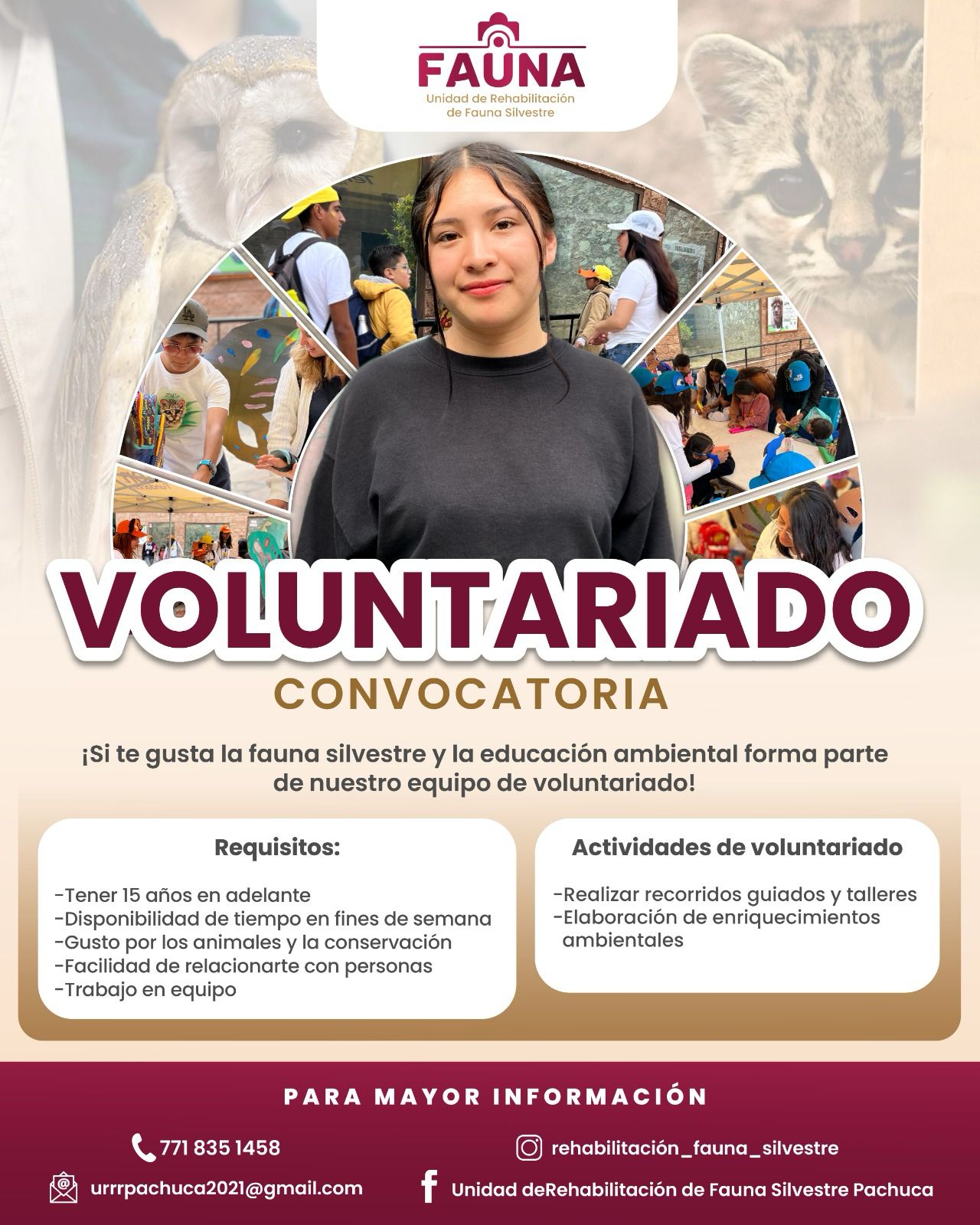 La Unidad de Rescate, Rehabilitación y Reubicación de Fauna Silvestre, Endémica y Exótica de México en Pachuca invita a los jóvenes interesados por el bienestar y educación animal a participar dentro de su equipo de voluntariado.