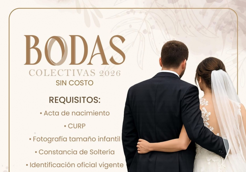 El Registro Familiar, en coordinación con el DIF Pachuca, recuerda que mañana 10 de febrero es el último día de registro para las parejas interesadas en participar en las Bodas Colectivas 2026, ceremonia que se realizará el jueves 12 de febrero.